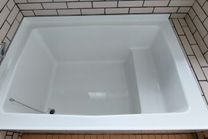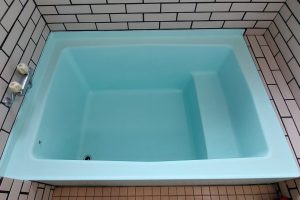 旧塗膜が劣化しヒビ割れを起こしている浴槽。(サイズ2000mm×2000mm)